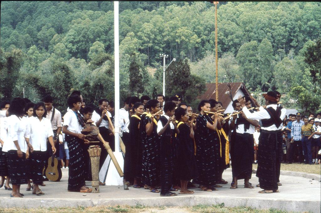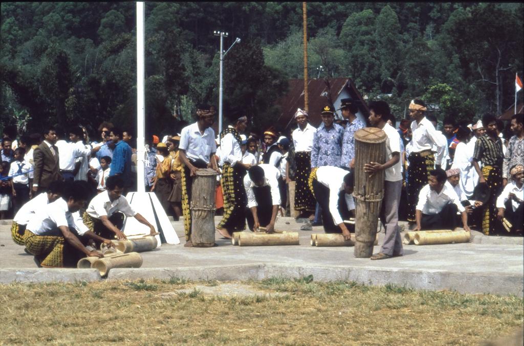 On Bajawa’s soccer field at the 17th of August Hari Proklamasi 1990 independence day celebration there were many local kampung music groups competing against each other. What stood out was that there was such diversity of music styles between neighbouring villages.